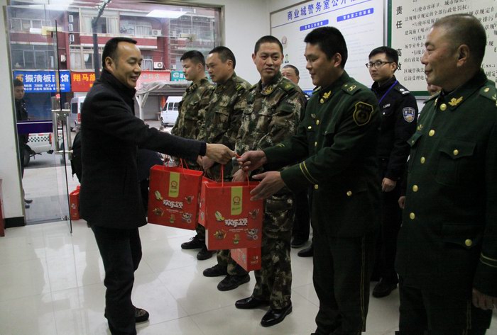 在慰問現場,裘海洪仔細詢問了基層一線隊員巡邏防范和為民服務活動開展情況。他說,今天是農歷除夕,在這辭舊歲、迎新春的特別時刻,你們為了商業城的安全運行,讓全城經營者和管理者過上一個平安幸福年,仍然堅守崗位,辛勤工作。為此,我代表商業城管委會向你們表示親切慰問,并致以崇高敬意,你們辛苦啦。