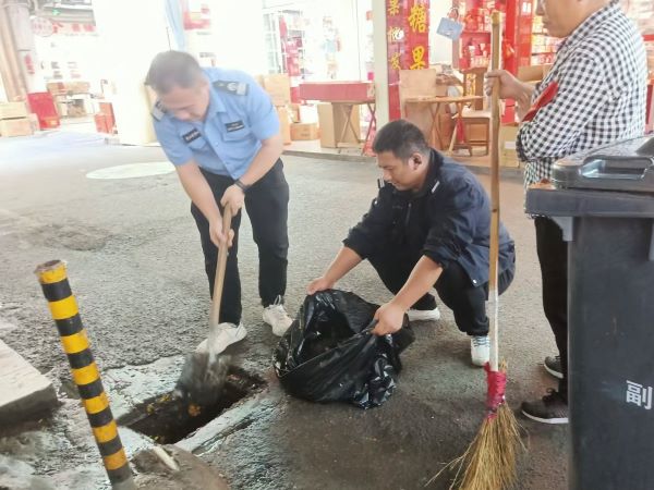 秋季來(lái)臨,雨水增多,為全面清淤,暢通管網(wǎng),提升市場(chǎng)排水防澇能力,近日,市場(chǎng)管理人員對(duì)市場(chǎng)排水溝,下水道進(jìn)行全面清理。工作人員逐一掀開(kāi)下水口窨井蓋進(jìn)行深度清理,清理積存的垃圾、淤泥、煙頭、紙屑、廚余等,確保排水管道及井蓋口通暢無(wú)阻、干凈無(wú)異味,同時(shí)提醒商戶嚴(yán)禁隨意傾倒垃圾污水,共同維護(hù)整潔干凈的市場(chǎng)環(huán)境。