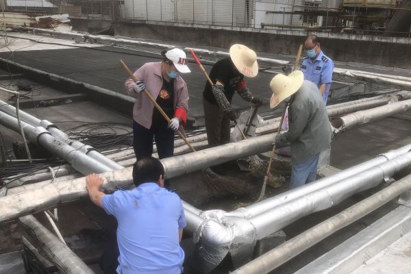 為提升商業(yè)城服裝市場的衛(wèi)生環(huán)境,進(jìn)一步消除屋頂安全隱患。5月15日,服裝市場組織管理人員與清潔工對樓頂屋面垃圾和雜物亂堆放的現(xiàn)象開展了一次整治清理行動。