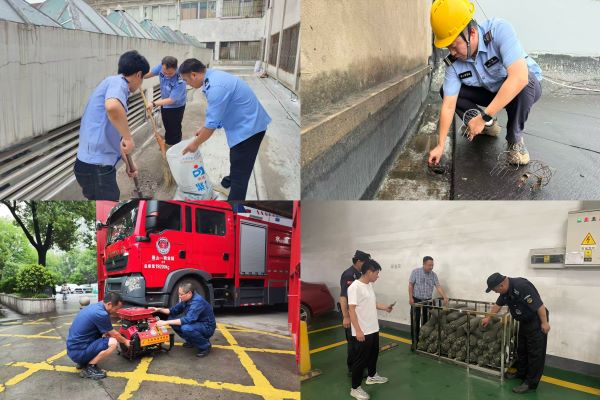 公司緊緊圍繞“防風險、保安全、護穩定、促發展”這條主線,全面細致做好梅雨季防汛工作。各市場積極部署、提前準備,組織工作人員迅速對各處落水口、窨井進行排查;對各停車場道閘設備及路面標識標牌進行檢查;對樓頂雜物進行清理;對發電機、抽水泵等設備進行調試。義橋星天地做好防汛物資清點和地下停車場抽水泵房檢查工作。