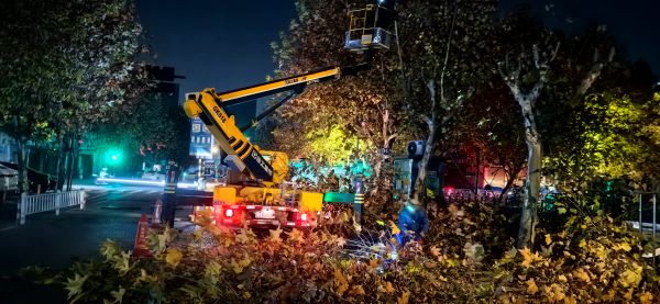 前期,公司對接第三方樹木修剪公司對修剪現場進行了勘查和評估,確定了樹木的修剪方案。同時,以告示的形式向城內商戶、住戶張貼為期10天的公告后開展樹木修剪工作。